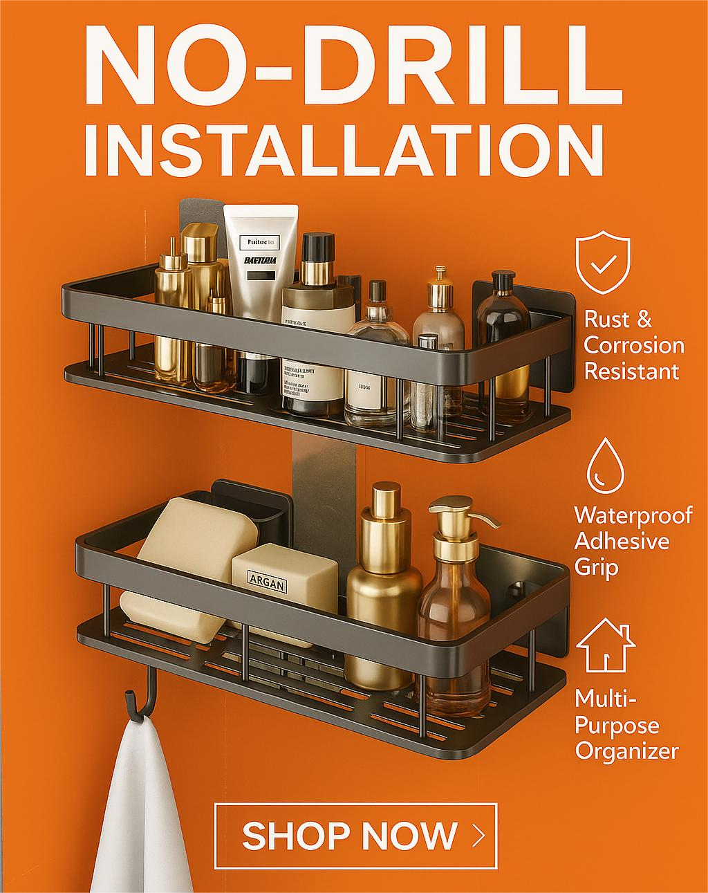 Store shampoo, toiletries, spices, bottles and daily essentials with ease. Keeps your space organized and clutter-free.