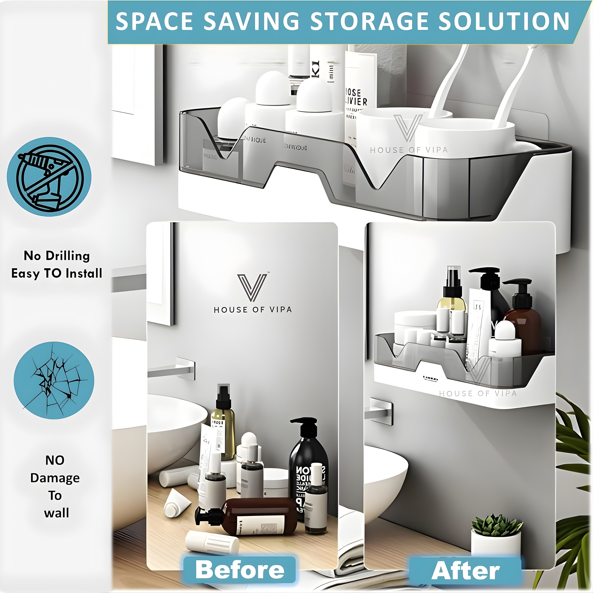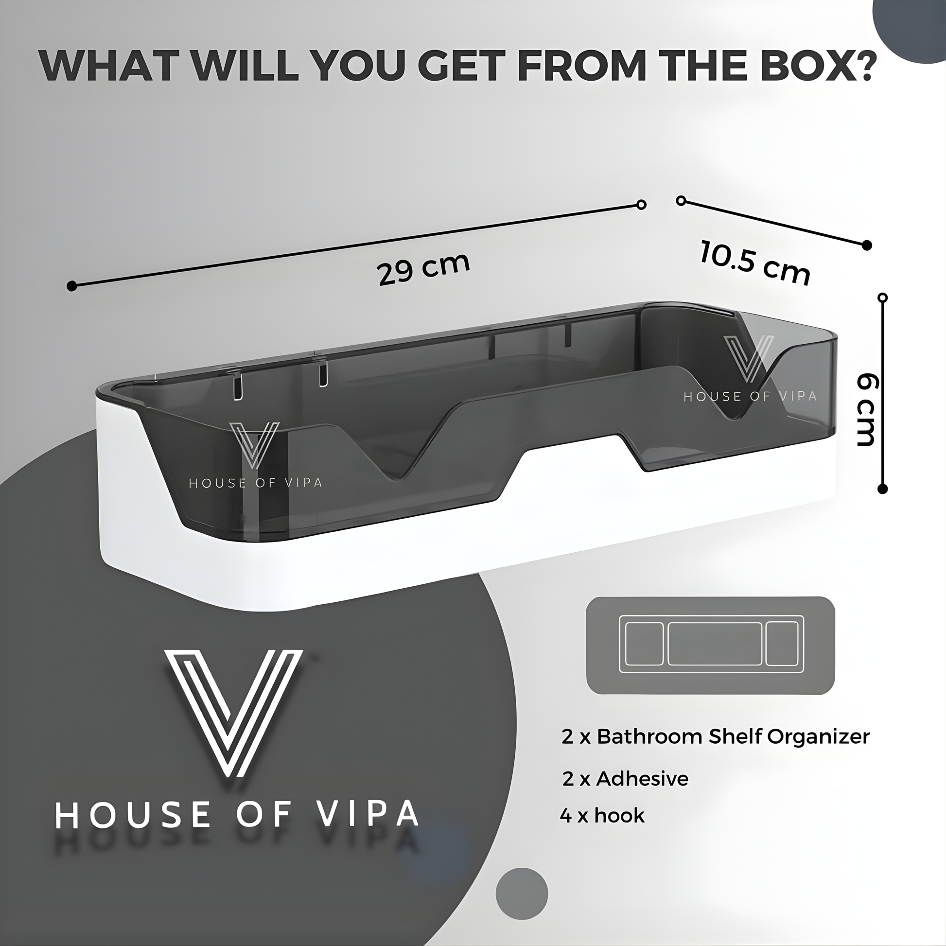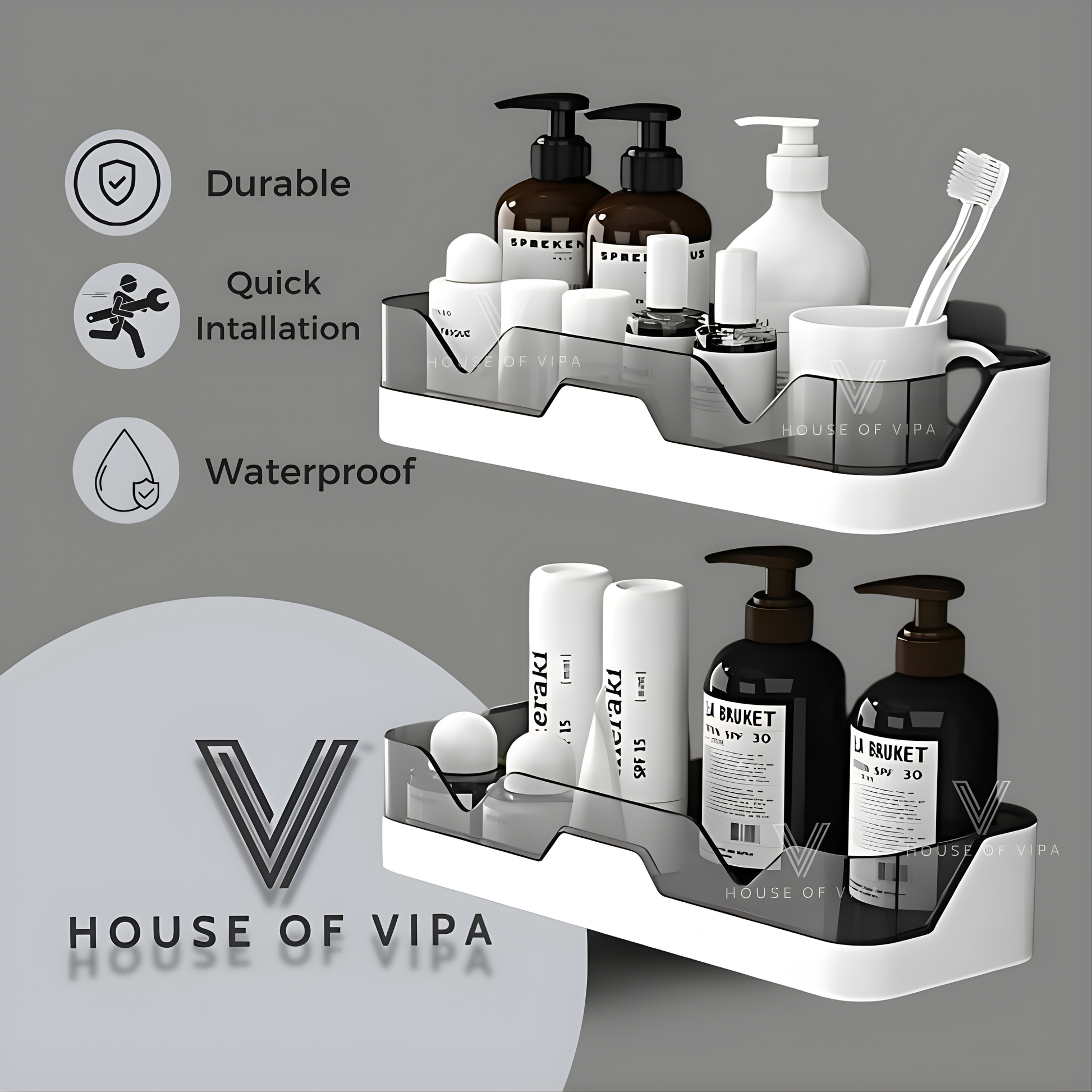 Self-Adhesive Bathroom Shelf Organizer | No Drill Wall Mounted Plastic Rack | Waterproof Storage Shelf for Bathroom & Kitchen (Black/White)